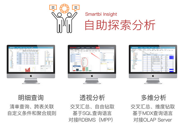 Smartbi Insight定位于前端數(shù)據(jù)分析,對接各種業(yè)務(wù)數(shù)據(jù)庫,數(shù)據(jù)倉庫和大數(shù)據(jù)平臺,滿足各種數(shù)據(jù)分析應(yīng)用需求,如大數(shù)據(jù)分析,自助探索分析,地圖可視化,移動管理駕駛倉,指揮大屏幕,企業(yè)報表平臺等。