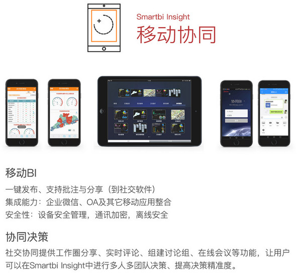 Mobile移動應(yīng)用讓企業(yè)員工可以隨時隨地地通過手機(jī)、平板查看和分析數(shù)據(jù)。豐富的圖形讓數(shù)據(jù)展現(xiàn)栩栩如生,離線下載隨身攜帶數(shù)據(jù),手寫批注讓信息分享、決策討論更加輕松。