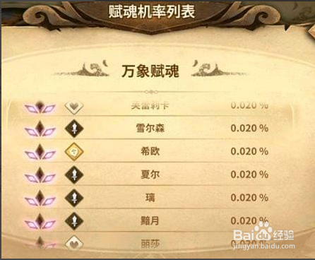 了解了基礎(chǔ)知識(shí),下面讓我們看一下賦魂概率: