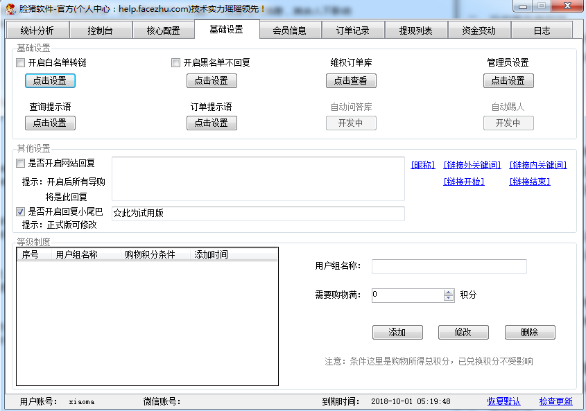 4、支持給用戶設(shè)置用戶分組,可以把購物積分等級一致的放在一個分組,這樣方便管理客戶。