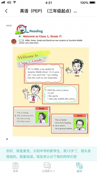 《課時練》同步聽力音頻播放功能和人教版同步電子教材,標(biāo)準(zhǔn)口語發(fā)音+豐富高清內(nèi)容,教材內(nèi)容即點即讀即翻譯。