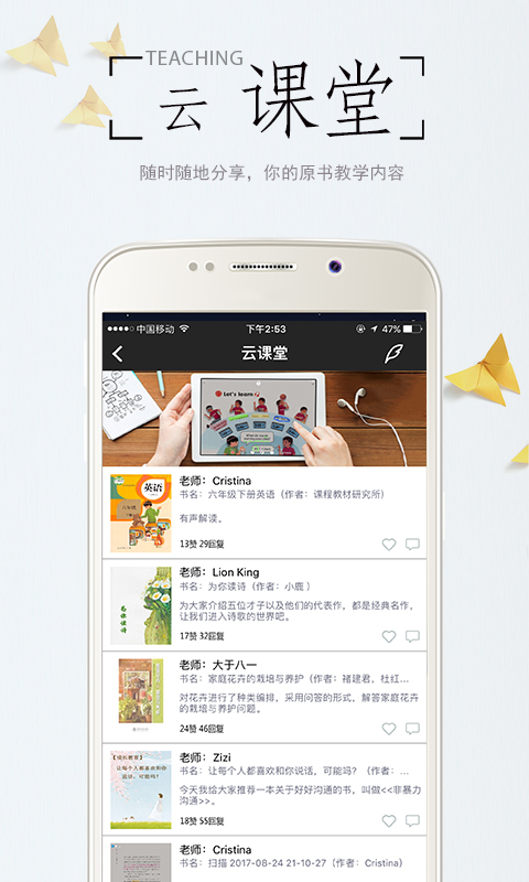 日閱通手機(jī)版是一款便捷可靠的閱讀學(xué)習(xí)軟件。老師可以隨時(shí)隨地分享原書教學(xué)內(nèi)容,針對(duì)性的指導(dǎo)點(diǎn)評(píng),同時(shí)學(xué)生可以自由選擇有聲讀物和精選圖書,不斷豐富閱讀量、知識(shí)點(diǎn)。
