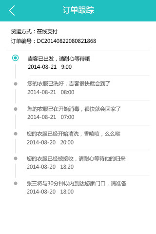 3.用戶需要洗衣時,僅需通過APP下單、預(yù)約時間地點聯(lián)系人,就會有專業(yè)的物流配送人員按時上門收取衣服