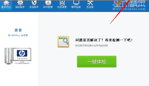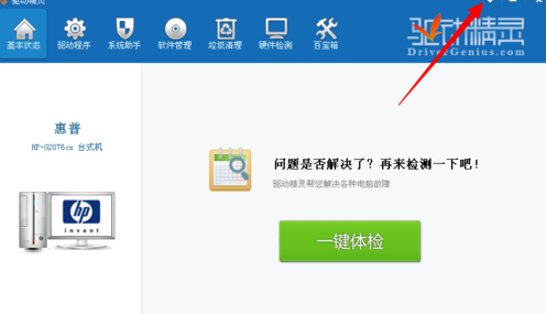 1.運(yùn)行驅(qū)動(dòng)精靈,我們可以看到驅(qū)動(dòng)精靈主界面,如果你是第一次運(yùn)行驅(qū)動(dòng)精靈的,點(diǎn)擊“一鍵體檢”來檢測(cè)電腦