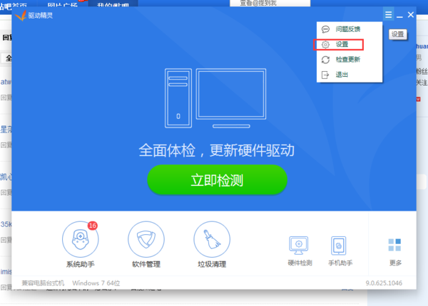 1、運(yùn)行驅(qū)動(dòng)精靈,點(diǎn)擊設(shè)置按鈕下設(shè)置命令;