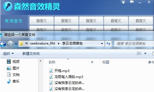 選擇【自定義】按鈕,導(dǎo)入李云龍語(yǔ)音mp3素材