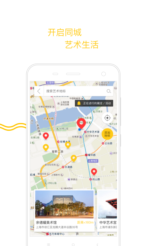 -藝術(shù)地標,直觀的發(fā)現(xiàn)你身邊的藝術(shù)場館與展覽活動。參與藝術(shù)地標建設,每一次互動都意味著你為這個社區(qū)做出的貢獻。在未來,你的每一份貢獻都將獲得回報。