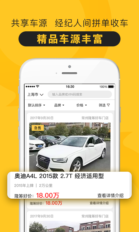 經(jīng)紀人發(fā)布同城車源,線上曝光,提供串貨;