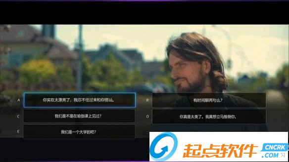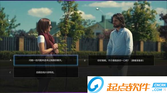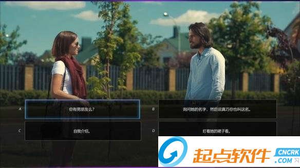 男主在路邊偶遇了一個女孩,玩家將在上述行為選項中選擇一項幫助男主開始搭訕。