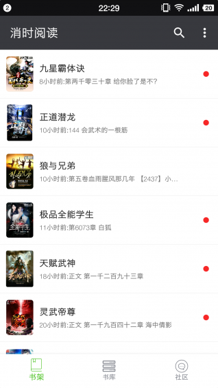消時(shí)閱讀app是一款便捷好用的掌上資訊閱讀類應(yīng)用。該應(yīng)用中擁有千萬小說海量圖書,可支持在線閱讀和離線閱讀兩種模式,每天不定時(shí)的推薦不同類型書籍,讓用戶輕松飽覽群書。