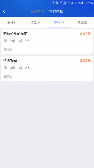喂喂打工快結(jié)招工、特約內(nèi)招、特約外招的多入口招工方式,依托實名制監(jiān)管系統(tǒng)、反垃圾審核系統(tǒng)及人工審核系統(tǒng),實行先認(rèn)證方可發(fā)布。引入第三方支付機(jī)構(gòu)對用戶進(jìn)行實名考勤登記及監(jiān)管支付,真正做到招工找工信息真實可靠,工資完工即結(jié)算,解決勞務(wù)工資不可控的問題。【更新日志】