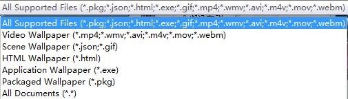 選擇你想要使用的壁紙類型,按照中文用戶常見習(xí)慣而言,以上傳視頻為例,wallpaper engine支持mp4、wmv、avi、m4c、mov、webm等格式,在這些格式當(dāng)中,處于大小與碼率等因素,我優(yōu)先推薦使用mp4格式,其次是avi。