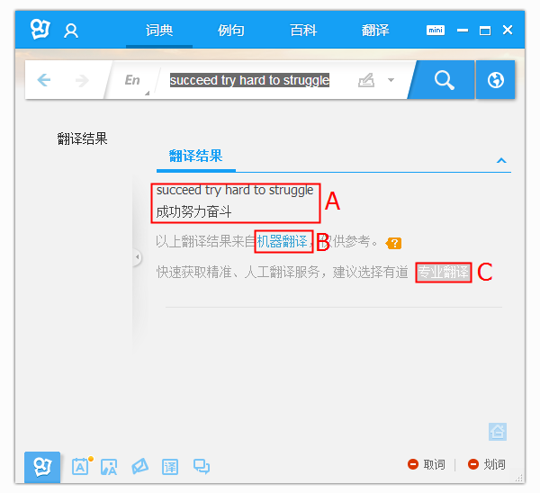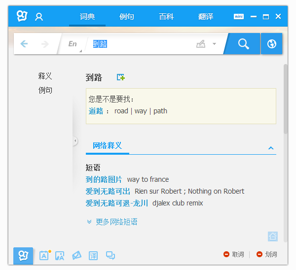 當您輸入較長的詞句時,可能沒有釋義結(jié)果,你可以參考翻譯結(jié)果。