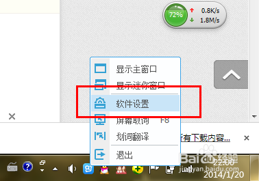 右擊桌面右下角的圖標,在彈出的菜單中選擇軟件設置的選項。