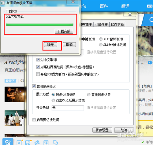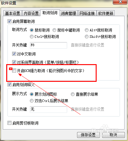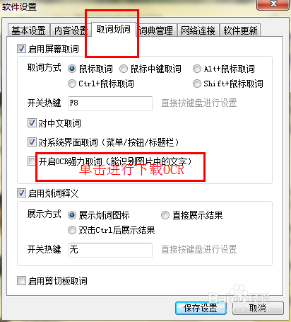 進入軟件設置界面后,選擇取詞劃詞選項,在取詞劃詞的選項中有一個下載OCR的選項,單擊進行下載。