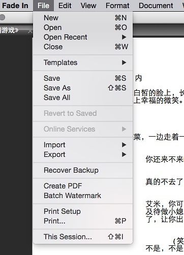 FD導(dǎo)入縮略圖 導(dǎo)入和導(dǎo)出多種文件格式非常簡(jiǎn)單,支持從文本到HTML到Open Screenplay Format XML等所有內(nèi)容。
