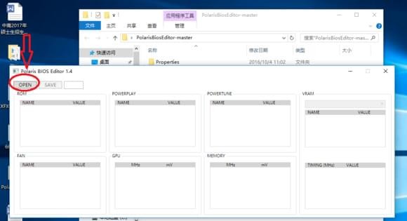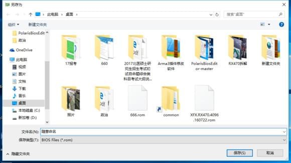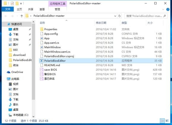 將備份的BIOS復(fù)制粘貼到PolarisBIOSeditor文件夾,然后運(yùn)行PolarisBIOSeditor.exe,