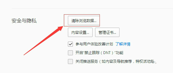 5找到“安全與隱私”點(diǎn)擊“清除瀏覽數(shù)據(jù)”