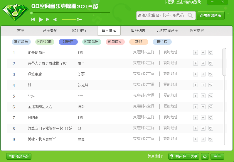 QQ空間音樂克隆能將網(wǎng)上的任意音樂添加到你空間
