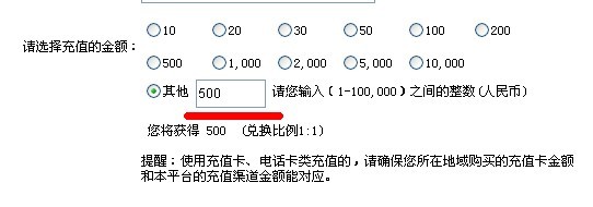 選擇您要兌換進(jìn)游戲的金額,可在圖示方框處手動(dòng)輸入任意整數(shù)金額,如上圖所示