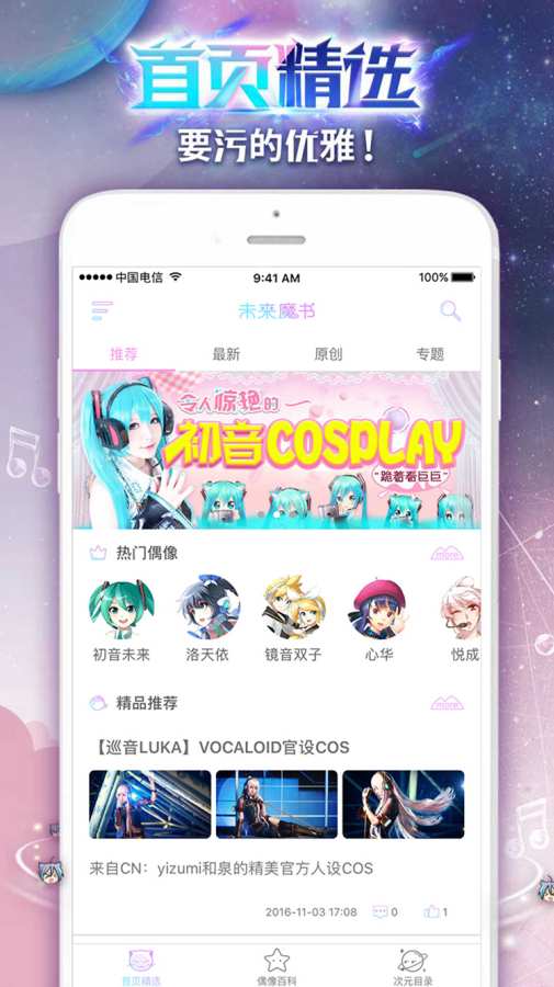 首頁精選——虛擬偶像勁爆熱點,精品內(nèi)容吐血推薦~還有優(yōu)雅的亮點專題值得小伙伴們細(xì)細(xì)把玩哦~偶像百科——虛擬偶像界的名人堂~男神女神不可描述的新鮮動態(tài)可以讓你隨時隨地**,少年,該認(rèn)真學(xué)習(xí)了!