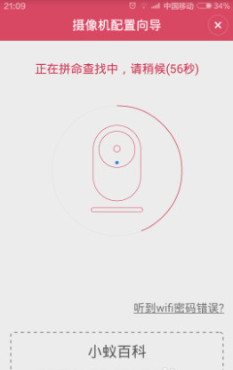 此時(shí)將顯示“正在拼命查找中”提示,在此只需要耐心等待完成手機(jī)APP與小蟻智能攝像機(jī)的連接操作。