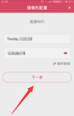 接下來(lái)將彈出“連接WiFi”界面,在此輸入路由器的“SSID”和“密碼”,點(diǎn)擊“下一步”按鈕。