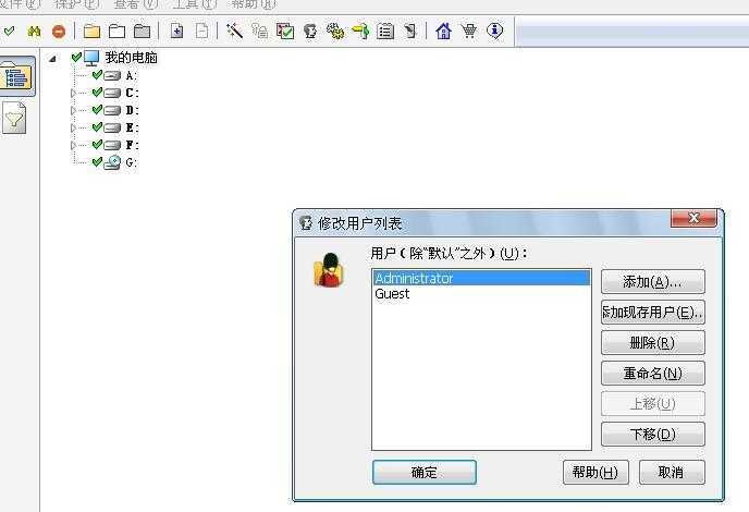 接著,如果是多用戶計(jì)算機(jī),你可以點(diǎn)開“修改用戶列表”,“添加現(xiàn)有用戶”,這樣可以對用戶進(jìn)行文件夾訪問控制。如果只是單用戶或不愿做多用戶設(shè)置,可以不配置,這樣就只對默認(rèn)賬戶生效。