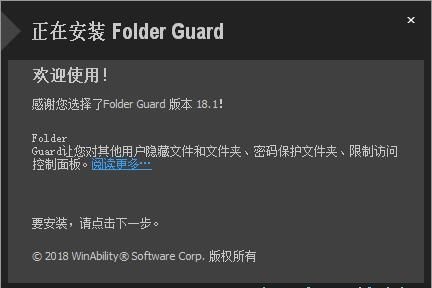 正在安裝FolderGuard,安裝程序正在將FolderGuard的文件安裝到指定文件夾中??赡苄枰獛追昼姷臅r(shí)間;
