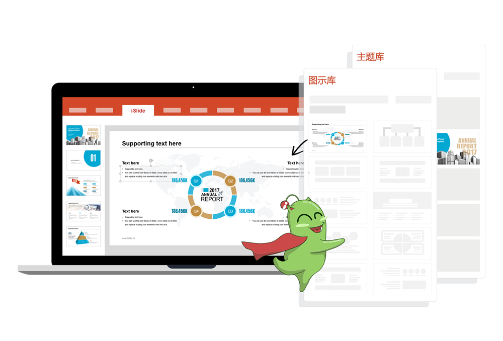 iSlide插件是專為ppt制作的一款輔助工具,專業(yè)團隊設(shè)計支持,能偶及時獲得源源不斷的創(chuàng)意與更新,擁有遠比原版更穩(wěn)定的表現(xiàn)力度和細節(jié),并且具有上手簡單、界面整潔等特色。此外,通過iSlide插件還可以一鍵輕松獲取PPT資源,包括100,000+圖標資源,4000+圖示素材,【軟件特點】
