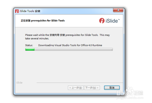 islide需要visual Studio tools for office4.0 runtime 和.netframework 4.5支持,點擊下一步即可,會自動下載這兩個工具。