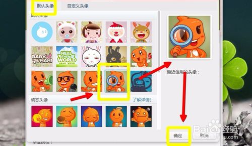 然后在系統(tǒng)頭像中選擇一個你感到不錯的頭像吧,點(diǎn)擊后,右上角立即有預(yù)覽圖,滿意的話點(diǎn)擊”確定“即可生效