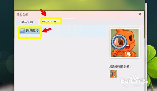 當(dāng)然了我們也可以修改稱自己電腦中的圖片作為頭像,點(diǎn)擊”自定義頭像“。然后點(diǎn)擊”選擇圖片“