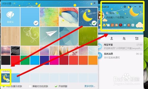 選擇自定義皮膚的時(shí)候,可以自行截選圖片的任何區(qū)域作為背景,打造屬于自己的阿里旺旺主題;