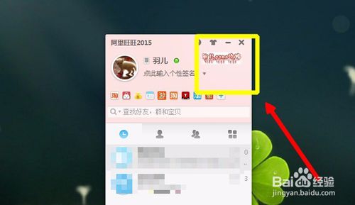 登錄自己的阿里旺旺買家版2015賬號后,來到界面,點(diǎn)擊右上角的皮膚功能按鈕,如圖具體位置
