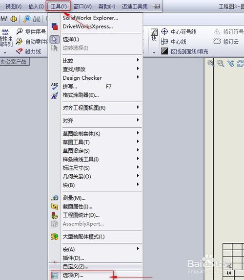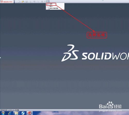 solidworks中如何設(shè)置工程圖模板打開(kāi)solidworks軟件,點(diǎn)擊“選項(xiàng)”,