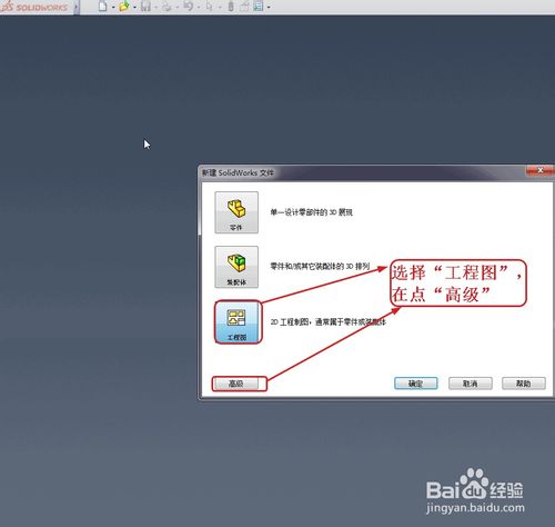 選擇“工程圖” 在點(diǎn)擊“高級(jí)”