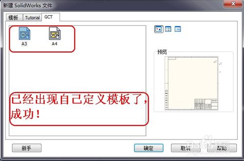 如圖,你所添加的工程圖模板已經(jīng)出現(xiàn),我這里只做了A3,A4的模板,如果你想做其它的模板,如法炮制!