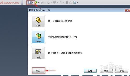 如何制作SolidWorks工程圖模板?選擇下拉菜單【文件】-【新建】命令,系統(tǒng)彈出“新建SolidWorks文件”對(duì)話框,單擊對(duì)話框左下角的“高級(jí)”按鈕,進(jìn)入下一步設(shè)置