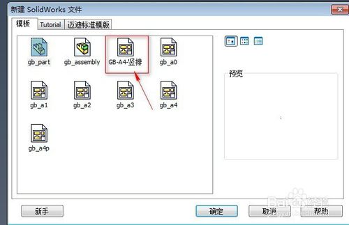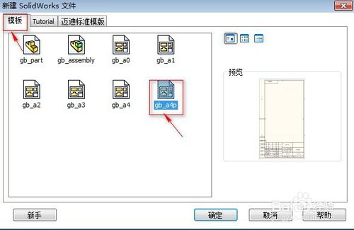 在系統(tǒng)彈出的“新建SolidWorks文件”對(duì)話框中,單擊“模板”選項(xiàng),選擇gb-a4p“gb-a4p”圖紙(即這個(gè)圖紙是A4,豎排格式)。單擊確定。