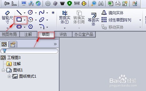 單擊“草圖”選項(xiàng),選擇矩形圖框繪制命令,繪制圖框線和圖形界限。