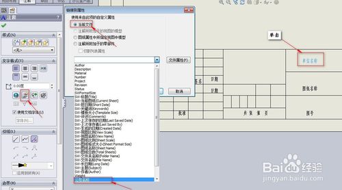 添加屬性鏈接。單擊標(biāo)題欄中的“單位名稱”,在右側(cè)出現(xiàn)的注釋屬性中,單擊【文字格式】區(qū)域中的鏈接到屬性按鈕;在彈出的鏈接到屬性對(duì)話框中選中當(dāng)前文件選項(xiàng),在文件屬性下拉菜單中選中“公司名稱”選項(xiàng),單擊確定,完成單位名稱的屬性鏈接。用同樣的方式完成其他的屬性鏈接。單擊圖紙格式右上角的圖紙狀態(tài)圖標(biāo),退出圖紙格式編輯狀態(tài)。