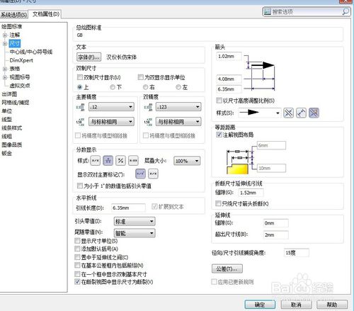 設(shè)置圖紙的國(guó)標(biāo)(GB)環(huán)境。選擇下拉菜單【工具】-【選項(xiàng)】命令,在彈出的對(duì)話框中,單擊【文檔屬性】按鈕,在總繪圖標(biāo)準(zhǔn)中選擇GB,在【文檔屬性】界面里,單擊【尺寸】做如圖設(shè)置,