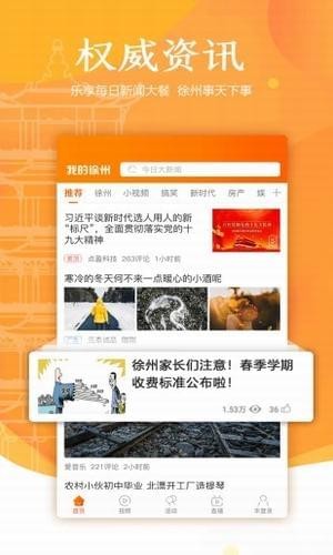 1、智能推薦,讓你掌握消息快人一步!2、我的徐州,一款越用越懂徐州的資訊客戶端
