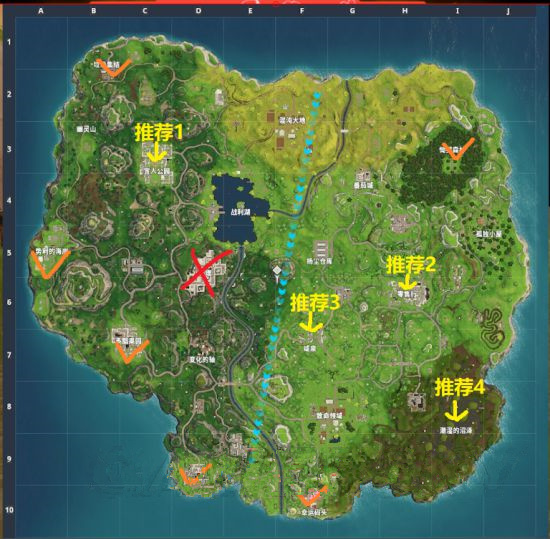 首先給萌新們分析一下怎么跳點才不會死那么快,這是目前的游戲地圖