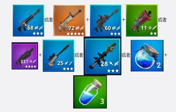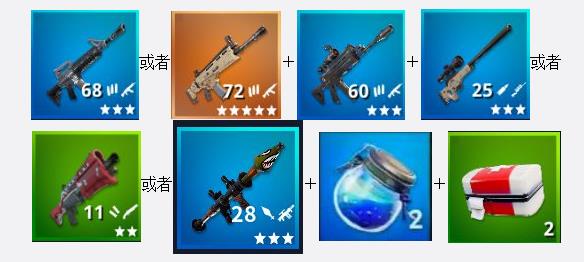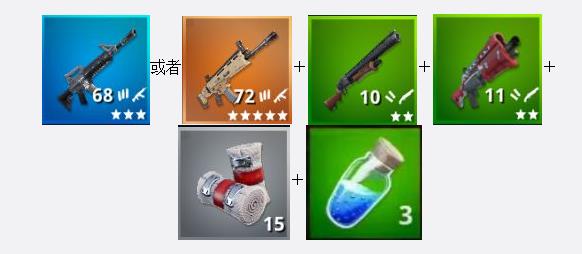 新手搭配之一:步槍進行中距離交火+四倍鏡遠距離交火+一個噴子近距離交火+大狙秒人或者火箭炮拆建筑+10瓶小甲