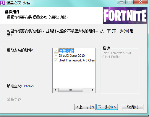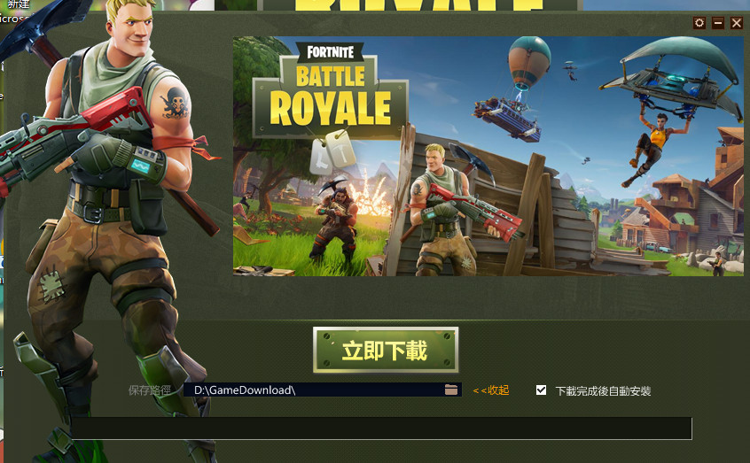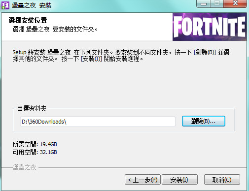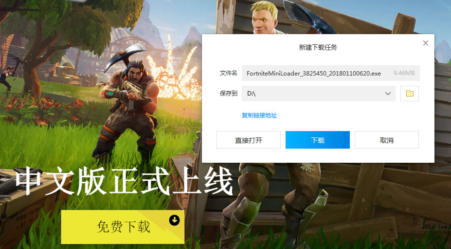 3、下面我們點擊下載,我們首先下載的是一個只有9.46兆內(nèi)容的堡壘之夜專用下載。不過游戲的安裝包需要7個G的內(nèi)容,玩家自行考慮安裝位置?。ㄐ』锇閭儽M量裝在其他新建的盤中,不要裝在C盤中,以免影響運行速度?。?br />