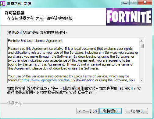 6、彈出了一個窗口,里面基本全是英文,只要點擊我接受就可以啦。