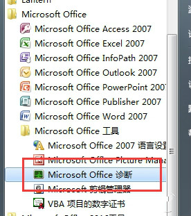 ·單擊開(kāi)始按鈕--所有程序--Microsoft Office工具--Microsoft Office診斷。
