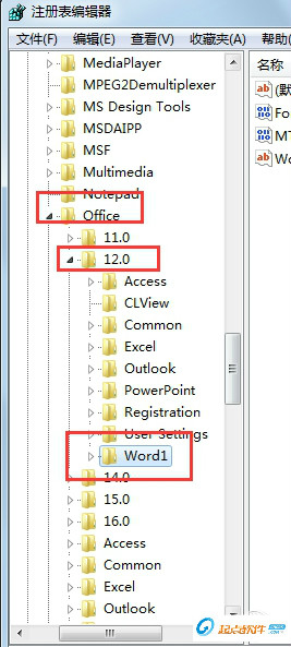 ·依次雙擊打開(kāi)“Software”->“Microsoft”->“Office”->"12.0",